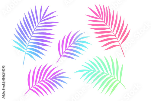 Fototapeta premium Vibrant neon gradient tropical palm leaves forming summer-inspired pattern against transparent background