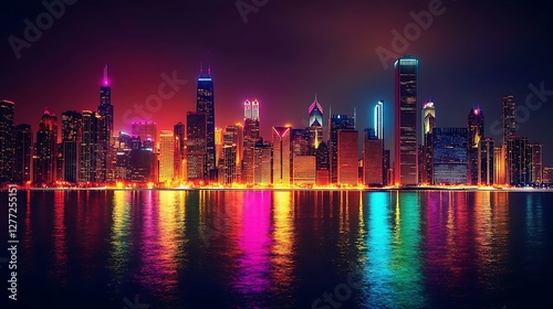 © DhirtiSundar, Naklejka premium Vibrant neon light cityscape high resolution wallpaper