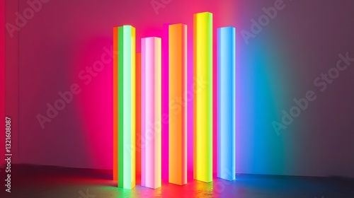 Obraz premium Vibrant Neon Light Columns Installation Art