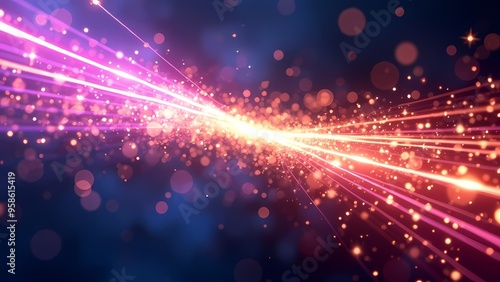 Fototapeta premium Vibrant Neon Light Trails and Bokeh Effects on Deep Blue-Black Gradient