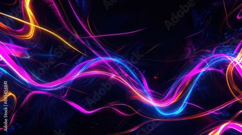 Obraz premium Vibrant Neon Light Trails on Dark Background for Tech and Creative Projects