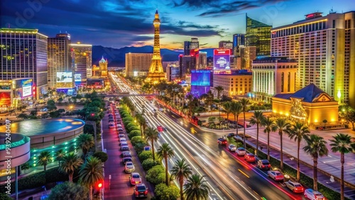 Fototapeta premium Vibrant neon lights illuminate the Strip's bustling nightlife, where luxury...