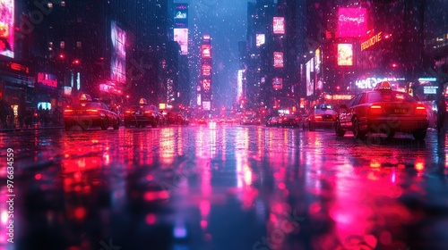 © Ummeya, Fototapeta premium Vibrant Neon Lights Illuminating a Modern Cityscape with Ample Copy Space for Creative Projects