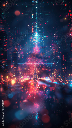 © Agnieszka, Obraz premium Vibrant Neon Line Art with Christmas Theme