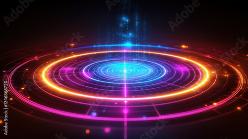 Obraz premium Vibrant neon radar chart with glowing lines and dynamic patterns