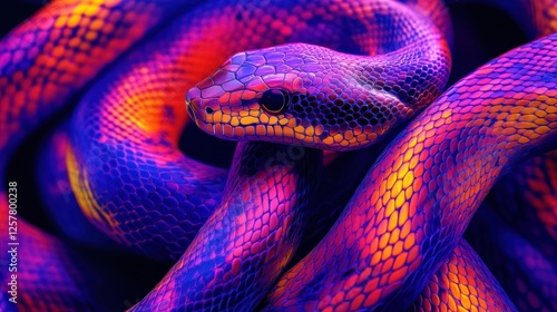 © nara, Fototapeta premium Vibrant Neon Snake Closeup Photography: A Mystical Reptile with Iridescent Scales