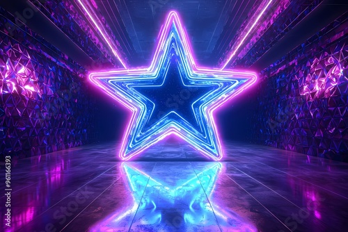 Fototapeta premium Vibrant neon star glowing in a futuristic corridor.