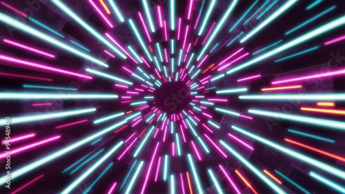 Obraz premium Vibrant Neon Streamlines - Computer-Generated 3D Render and Illustration