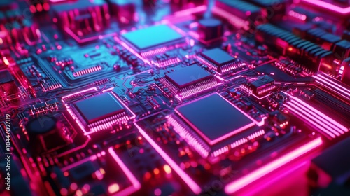 © AizayStock, Obraz premium Vibrant Neon Technology Circuits Background