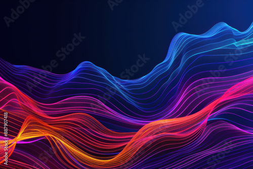Fototapeta premium Vibrant neon waveforms in abstract digital landscape against dark background,...