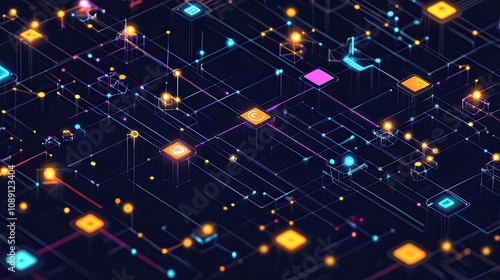 Fototapeta premium Vibrant network nodes in flat vector style, showcasing a tech startup...