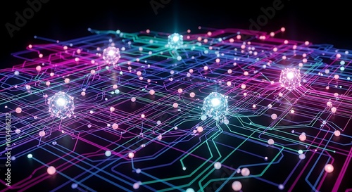 Fototapeta premium Vibrant network of glowing connections creates a futuristic, dynamic tech...