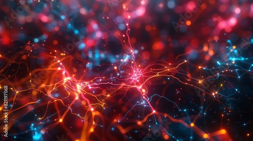 Fototapeta premium Vibrant neural network visualization featuring bright connections and nodes,...