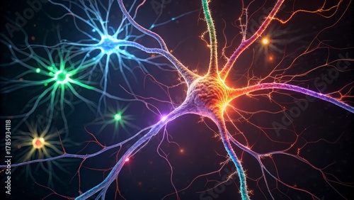 © Anamika, Obraz premium Vibrant neural network with pulsating light signals