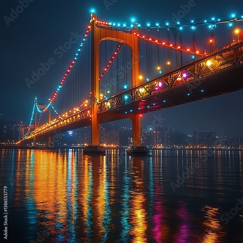 © bagus_, Fototapeta premium Vibrant Night Bridge over River.