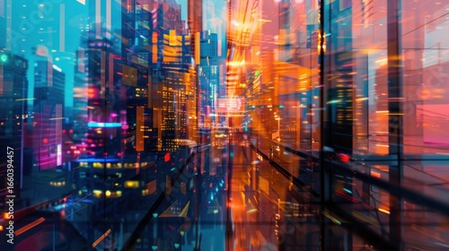 Obraz premium Vibrant night cityscape reflection