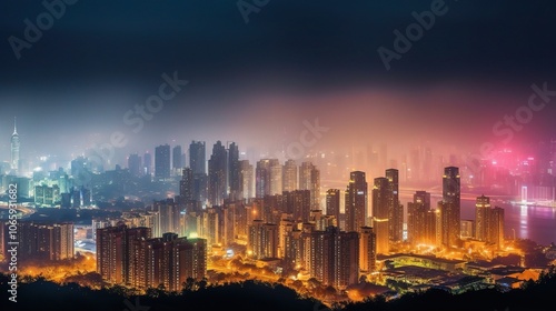 Obraz premium Vibrant Night Cityscape with Towering Skyscrapers