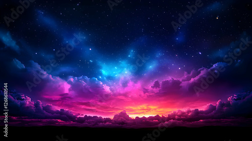 © Arthur Constantine, Obraz premium Vibrant Night Sky with Colorful Clouds and Stars