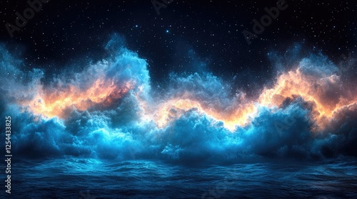 Fototapeta premium Vibrant night sky with dramatic clouds illuminated by orange and blue hues...