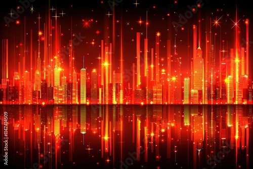 Obraz premium Vibrant night skyline display urban city digital art reflective water...