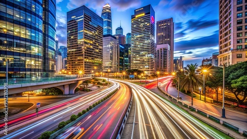 © PloyJai, Fototapeta premium Vibrant night traffic scene in the city with light trails and illuminated buildings