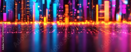 © Siripong, Naklejka premium Vibrant nightlife celebration urban cityscape digital art neon lights futuristic atmosphere aerial view