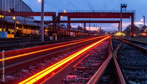 © Kitta Studio, Fototapeta premium Vibrant Nighttime Railway Scene with Illuminated Train Tracks