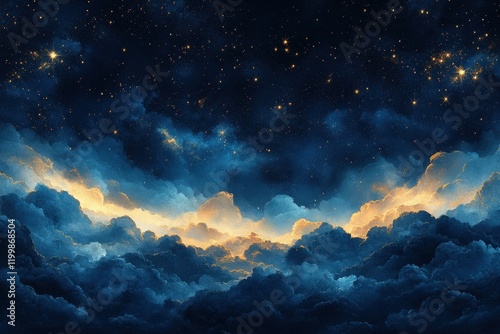 Fototapeta premium Vibrant nighttime sky filled with clouds and shimmering stars creating a...