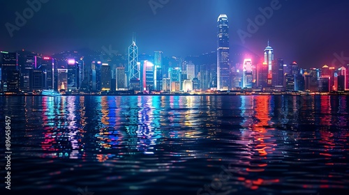 © julio, Fototapeta premium Vibrant Nighttime Skyline of Hong Kong