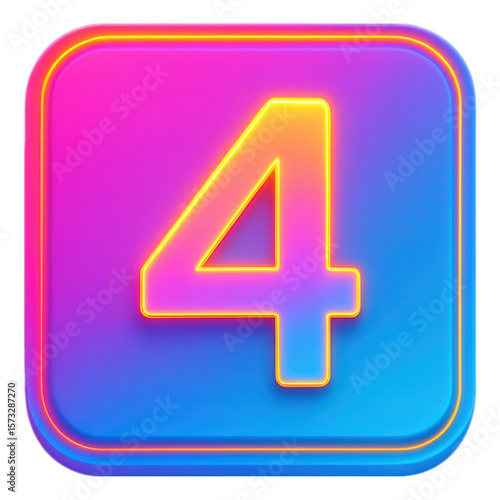 © vlntn, Fototapeta premium Vibrant Number Four in Neon Style