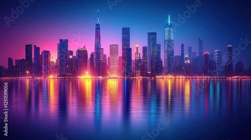 © TITISCAHYA, Obraz premium Vibrant NYC Skyline Night Reflection