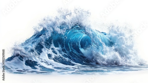 © Chinases, Obraz premium Vibrant ocean wave crashing against the shore under bright sunlight during midday hours