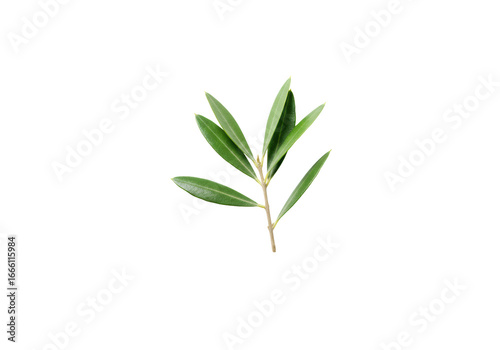 Obraz premium Vibrant olive branch with lush green leaves, perfectly isolated on a transparent, shadowless studio backdrop, soft diffused lighting, flat lay, clean and serene natural health concept