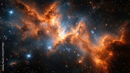 Fototapeta premium Vibrant Orange and Blue Nebula in Deep Space with Scattered Stars