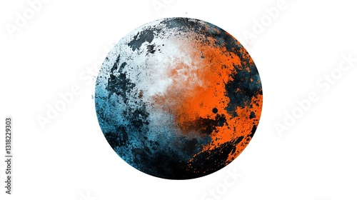 © dong, Fototapeta premium Vibrant Orange and Blue Planet Illustration: Contrasting Colors and Detailed Textures Depicting a Dynamic and Vivid Celestial Body. Isolated on White Background.
