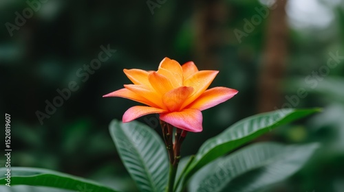 © Nob, Fototapeta premium Vibrant Orange and Pink Flower Blooming Amidst Lush Green Foliage