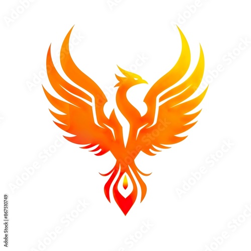 Fototapeta premium Vibrant Orange and Yellow Phoenix Illustration with Spread Wings