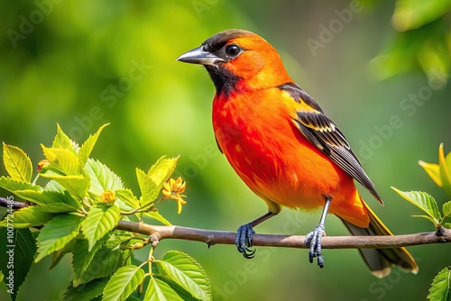 © Danicha, Fototapeta premium Vibrant Orange Bird Perched on Branch in Minnesota's Natural Habitat During a Sunny Day