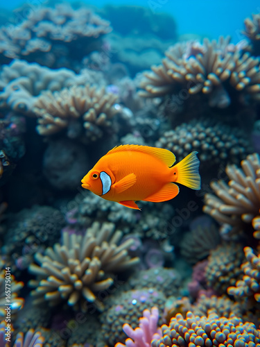 Obraz premium Vibrant orange fish swimming gracefully in a coral reef