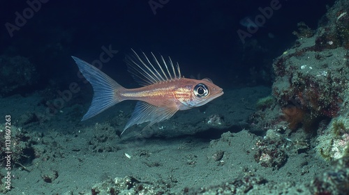 © Boonnam Burart, Fototapeta premium Vibrant Orange Fish Swimming Gracefully in Clear Underwater Scene