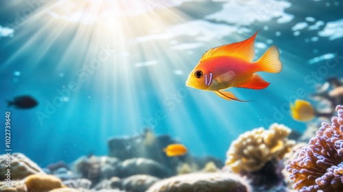 Fototapeta premium Vibrant Orange Fish Swimming in Clear Ocean Water