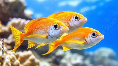 © Ratchanee, Fototapeta premium Vibrant Orange Fish Swimming in Clear Tropical Ocean Waters