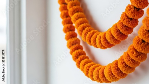 Obraz premium Vibrant orange flower garlands, detailed texture, festive, decorative