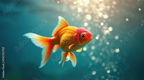 Fototapeta premium Vibrant Orange Goldfish Swimming Gracefully in Soft Light Underwater