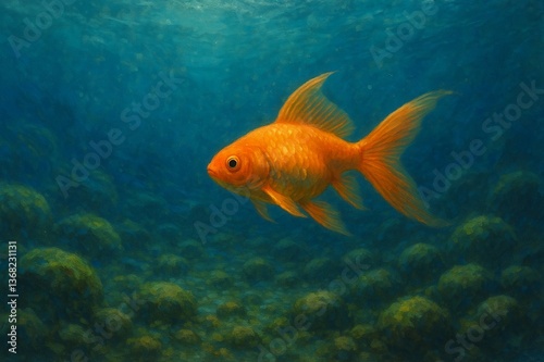 Fototapeta premium Vibrant Orange Goldfish Swimming in Clear Aquatic Environment