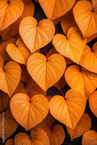 © Pui, Obraz premium Vibrant orange heart-shaped leaves create a stunning, natural pattern, reflecting the beauty of autumn foliage.