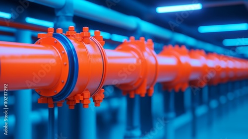 Obraz premium Vibrant orange pipes, an industrial interior perspective on engineering and...