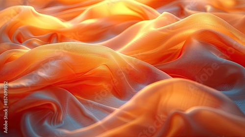 Obraz premium Vibrant orange silky fabric with a glowing texture, creating a dynamic and warm flowing background for stylish designs