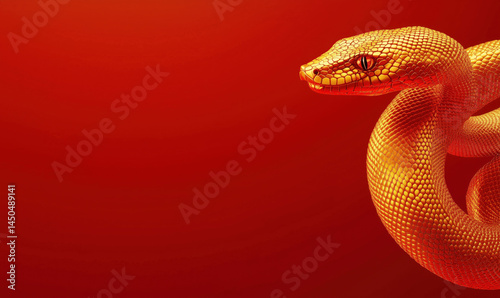 Fototapeta premium Vibrant orange snake against a red background showcasing intricate scales and...