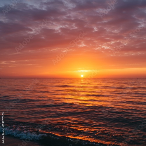 © AoiHikari, Fototapeta premium Vibrant Orange Sunset Over Calm Ocean Water